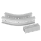 Flat corner to make 45 Deg turns. It is recommended to place supports under the corners. Bending radius of 300 mm. Junctions included to facilitate mounting. Insulating material. Colour: grey RAL 7035.