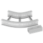 Flat corner to make 45 Deg turns. It is recommended to place supports under the corners. Bending radius of 300 mm. Junctions included to facilitate mounting. Insulating material. Colour: grey RAL 7035.